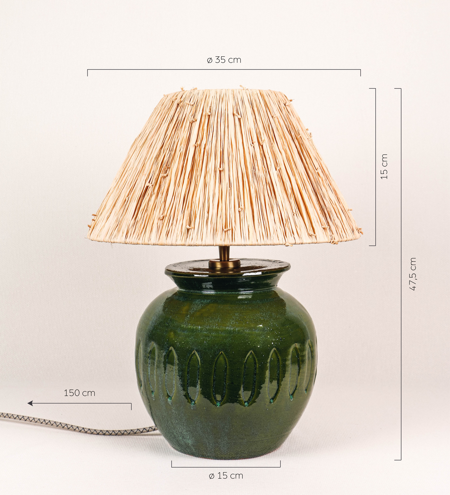 Candeeiro de Mesa Josefa | Verde Padrón com Abatjour RáfiaCandeeiro de Mesa Josefa | Verde Padrón com Abatjour Ráfia