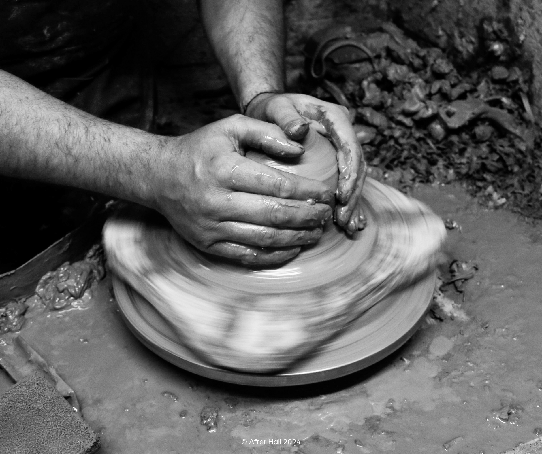 Arrojado pela forma dos pratos que, naturalmente, são redondos, mas, distintivamente, rasos, espessos e densos. Com bordas subidas em ângulo reto, suficientemente altas para o apoio que costuma faltar quando se usa só garfo ou só colher. Conjugam esta configuração de linhas direitas com a robustez e o toque rústico da olaria tradicional.