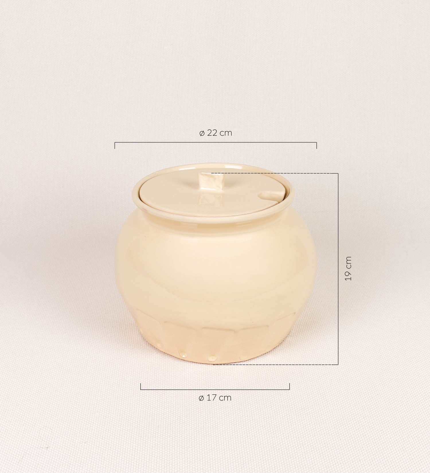 As nossas loiças parecerem vindas sabe-se lá de onde. Talvez de tempos em que os romanos ainda andavam aqui, ou diretamente das pinturas de Josefa de Óbidos. Mas não! São feitas aqui mesmo, na Bajouca, por artesãos que mantêm viva a tradição da olaria, com o saber-fazer passado de geração em geração. Cada peça é verdadeiramente única e carrega a identidade de quem a moldou. A Terrina do Arco-da-Velha, num acolhedor tom bege de nabo cozido, é ideal para servir sopas, mantendo-as quentinhas por mais tempo, ou até uma refrescante sangria para aqueles almoços entre amigos que nunca queremos que acabem!
